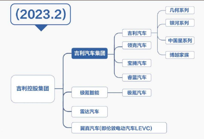 从2010年收购沃尔沃后,吉利开启迅猛扩张期,2023年2月,吉利银河诞生,这标志着14年间,吉利已拥有多达16个品牌,成为“新能源时代的大众”。