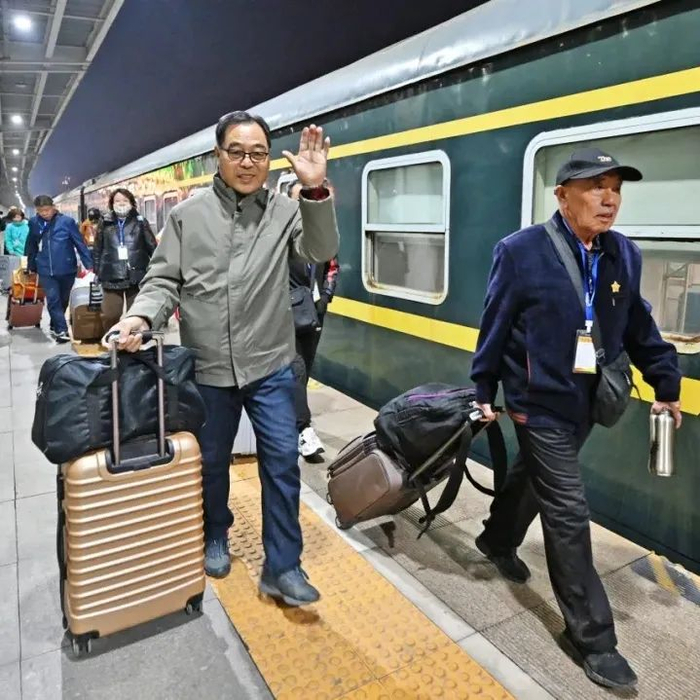 在银发旅游列车上