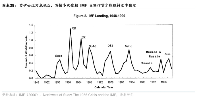 多次事件冲击下市场丧失对英国财政与汇率政策独立性的信心。在1956年苏伊士运河危机期间,英国试图依靠武力介入中东局势,但却因美元流动性短缺和美国政府的金融制裁“威胁”被迫撤军。美国财政部长哈里曼明确表示,若英国不停止军事行动,美联储将不再支持对英贷款安排,并将冻结英国在IMF的提款权。由于英国丧失了在战争期间紧急扩财政的能力,无财政余力应对英镑抛售或战争扩张,不得不接受美国撤军要求,以换取美元融资。这一事件标志着英国财政与货币政策已不能独立自主地支撑其储备货币地位,因而不再符合“储备货币发行国应具备独立的宏观政策空间”这一核心要求。此外,在苏伊士运河危机期间,英国动用其总储备的三分之一来干预市场,这让市场押注英国或无力再度如此干预。因而在后续多次危机中,市场敢于押注英镑无力维持其高汇率。