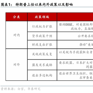 以上,政府债务将进一步攀升。对外发起关税战。特朗普上任以来反复拉动关税“手风琴”,对加拿大、墨西哥、欧盟等传统贸易伙伴加征了较高关税,且关税出台过程存在较大的随意性,对美国以及全球经济都造成冲击。动摇盟友信任。特朗普政府在乌克兰等问题上的表态,试图让加拿大成为第