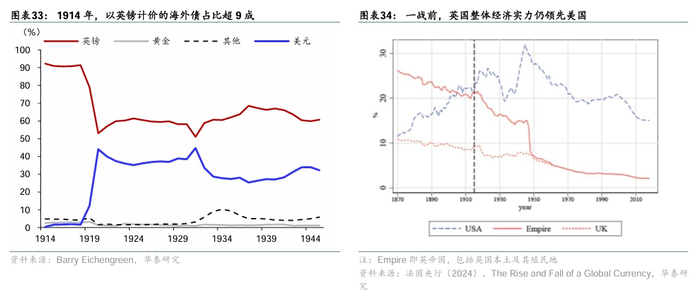 1. 一战前英镑为全球最重要的储备货币,两次世界大战期间地位下降