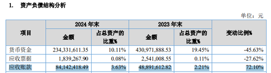 财报数据显示,至2024年底骑士乳业在手的货币资金为2.34亿元,同比减少了45.63%,至今年3月底货币资金进一步减少至1.6亿元。