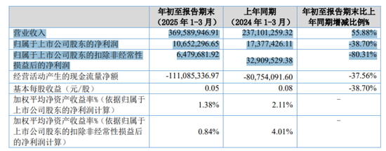 盈利能力则持续恶化。2024年公司毛利率已降至18.96%,而2025年一季度毛利率仅为10.65%,较去年同期更是暴跌19.12个百分点。净利率同步下滑至1.19%,同比下降6.51个百分点。