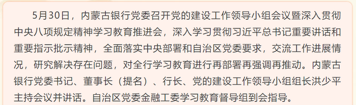 5月30日,据内蒙古银行公众号发布,洪少平已以内蒙古银行党委书记、董事长(提名)、行长、党的建设工作领导小组组长身份主持相关会议。