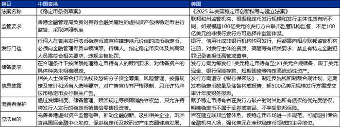 图:美国和中国香港的稳定币法案对比
