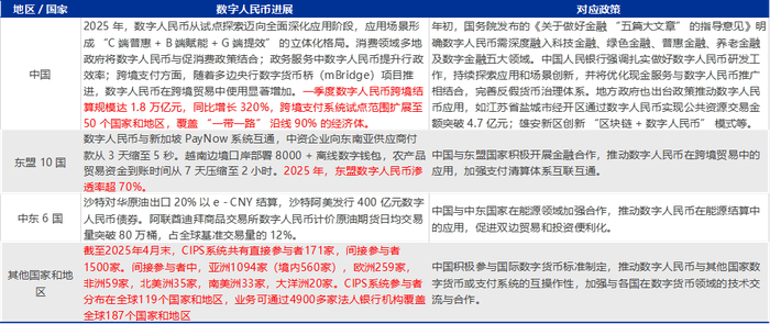 全球数字货币的进展中数字人民币较为领先。2014-2024年数字人民币快速发展,目前已经取消“试点版”标识,预计未来将逐步向全民普及。全球来看,中国数字人民币已经开始进入全面深化应用阶段,相对全球其他国家先行。而对应的数字货币桥mBridge与CIPS系统形成良好互补,共同推动人民币国际化进程。与此同时,人民币的购买力,中国在世界贸易中的地位,制造业的强大以及中国人民政府良好的国际信誉,都将对数字人民币发展带来机会形成重要支撑。而所有以中国实物资产为底层基础的金融架构注定将逐步迎来话语权的上升。
