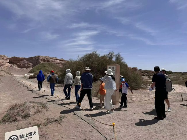 景区创新推出的互动活动成为亮点。“扫码关注赢好礼”官方公众号推广活动吸引了众多游客积极参与,大家纷纷扫码关注,领取特色文创礼品,有效提升了景区线上影响力。精心设计“角色扮演互动”环节,工作人员化身历史人物,通过趣味问答和情景再现式讲解,引导游客沉浸式了解悬泉置的悠久历史。这一新颖形式极大地激发了游客兴趣,活动现场互动踊跃、气氛热烈,掀起了一波了解丝路文化的热潮。