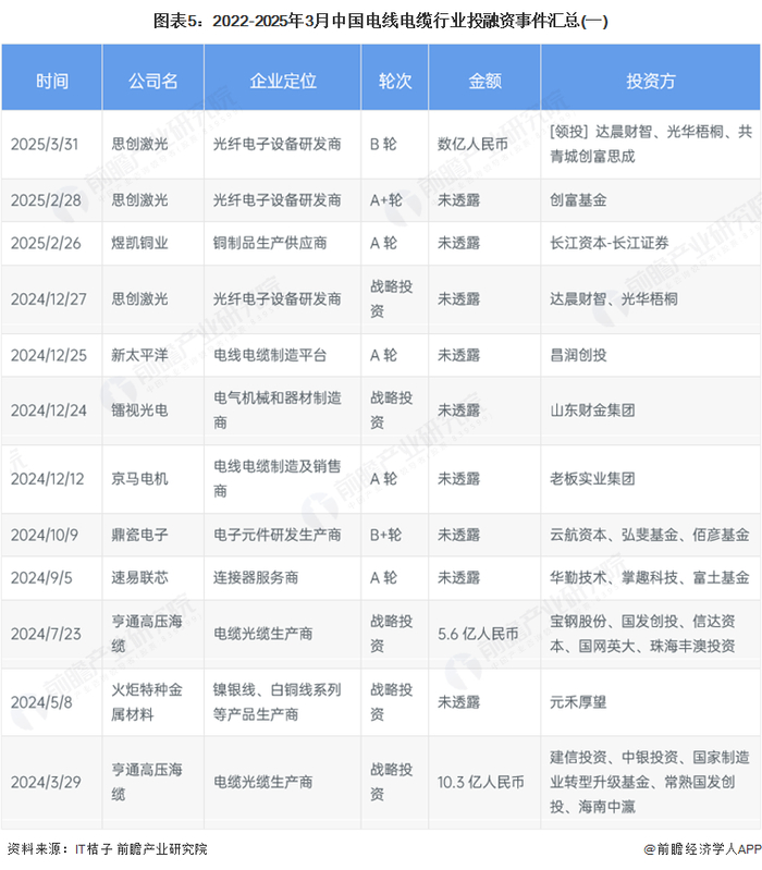 【投资视角】启示2025:中国电线电缆行业投融资及兼并重组分析(附投融资事件、产业基金和兼并重组等)