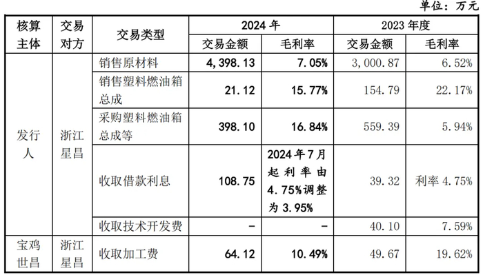 浙江星昌于2022年11月设立,2022年与发行人不存在内部交易,2023年、2024年浙江星昌与发行人的主要内部交易情况如下: