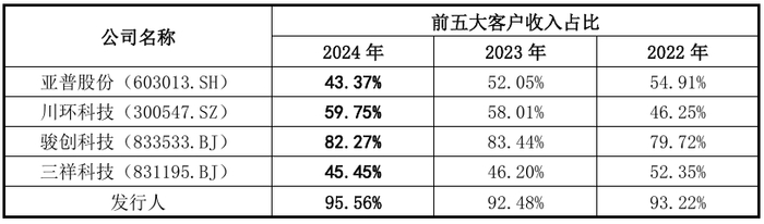 值得注意的是,公司前五大客户收入占比显著高于同行业可比公司。