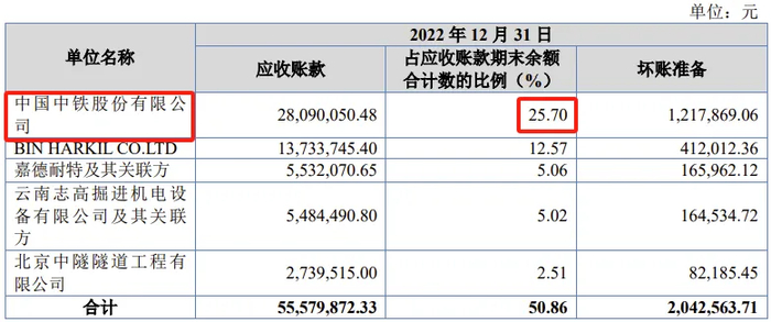 (3)报告期末第一大欠款客户均为中国中铁,远超中国中铁贡献的收入比例