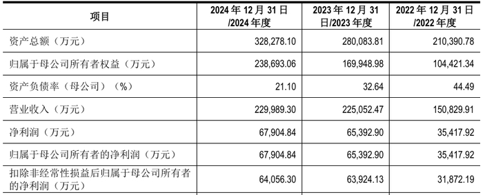 报告期内,公司营业收入分别为150,829.91万元、225,052.47万元和229,989.30万元,扣非归母净利润分别为31,872.19万元、63,924.13万元和64,056.30万元。