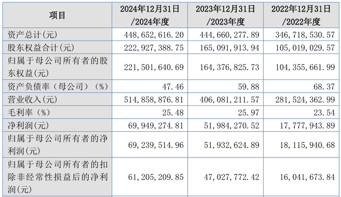 报告期内,公司营业收入分别为28,152.44万元、40,608.12万元和51,485.89万元,扣非归母净利润分别为1,570.23万元、4,702.78万元和6,120.52万元。