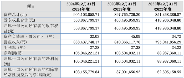 报告期内,公司营业收入分别为79,504.19万元、84,036.61万元和88,843.77万元,扣非归母净利润分别为6,260.52万元、8,700.17万元和10,315.58万元。