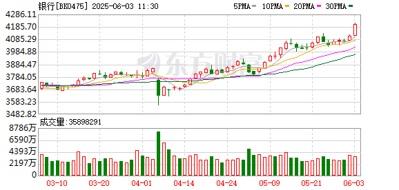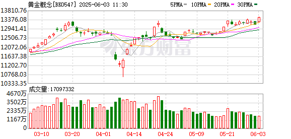 行业板块方面,银行股集体走强,沪农商行盘中涨停,渝农商行涨逾7%,中信银行、杭州银行等多只银行股盘中复权价则创历史新高。此外,受到国际金价再度上行消息推动,黄金概念股集体大涨。