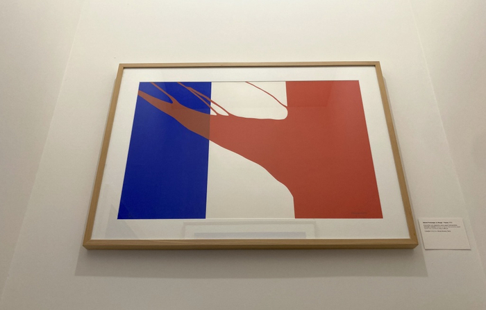 弗罗芒格在1968年前后,以“红色”为主色的系列画作:《红色 - 法国》(Le Rouge - France),1970,哈内姆勒艺术纸上的涂料印花,60.3x 89cm。Nicole Brenez个人收藏,巴黎。