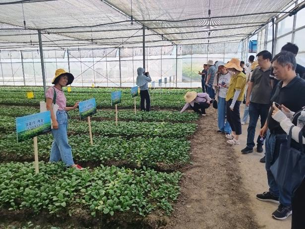 当天,与会人员除了前往金山区番茄研发中心,还来到上海思瑶蔬菜种植专业合作社进行了实地观摩。据介绍,作为金山区蔬菜产业发展的重要示范基地,该合作社在国家大宗蔬菜产业技术体系的支持下,引进体系内优质设施茄果类新品种107个,其中番茄品种61个;绿叶菜新品种36个。这些品种经过严格筛选,具有高产、优质、抗逆性强等特点,为提升蔬菜产量与品质奠定了坚实基础。