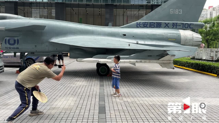 “歼-10C”高大威猛,长安启源A07和Q07霸气十足、科技感满满,市民朋友们争先上前合影,现场气氛非常热烈。