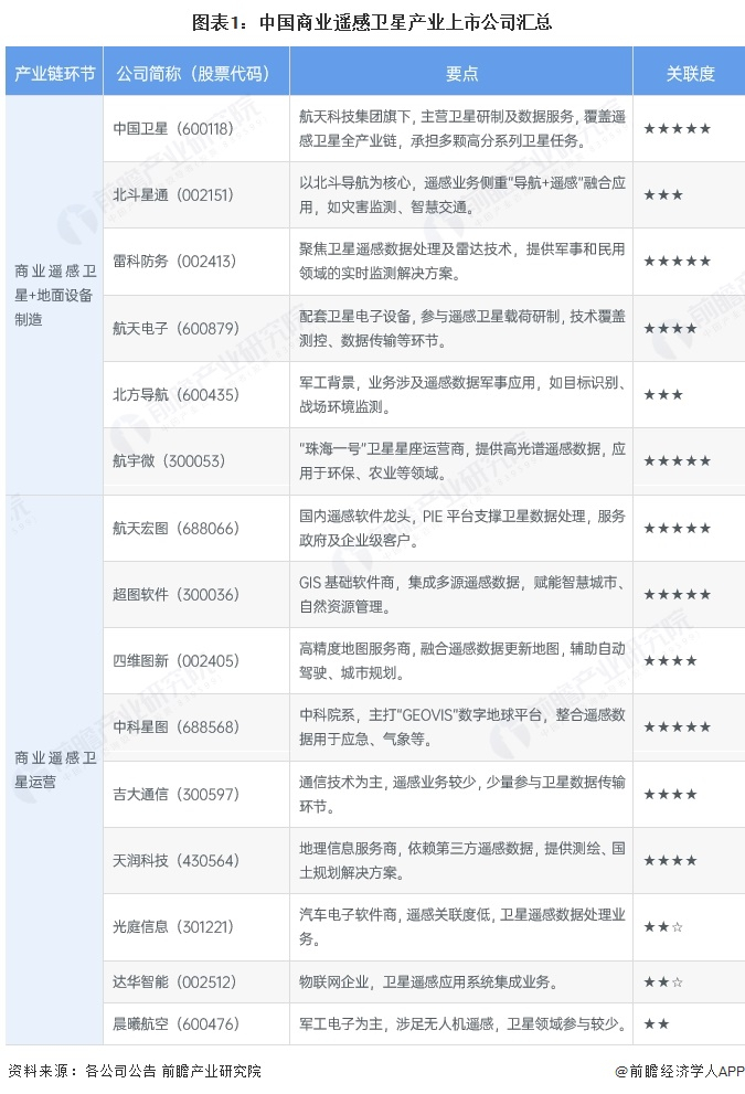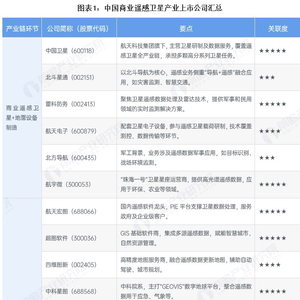 商业遥感卫星行业上市公司汇总