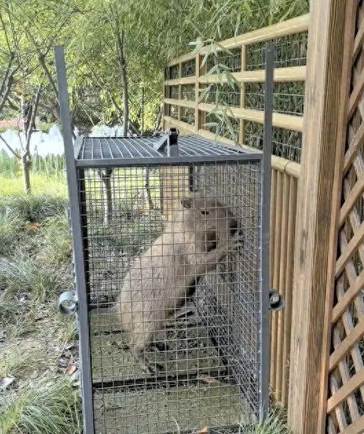 今天,江苏省扬州市茱萸湾风景区管理处发布消息:6月3日凌晨2点,“离家出走”两个多月的卡皮巴拉“豆包”走进诱捕笼,触动机关,自动门随即关上。