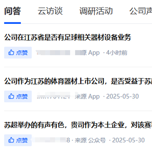 需要注意的是,早在5月30日就有投资者向金陵体育提问“苏超”对上市公司的影响,如公司是否关注参与“苏超”,有无涉及足球器材业务等。