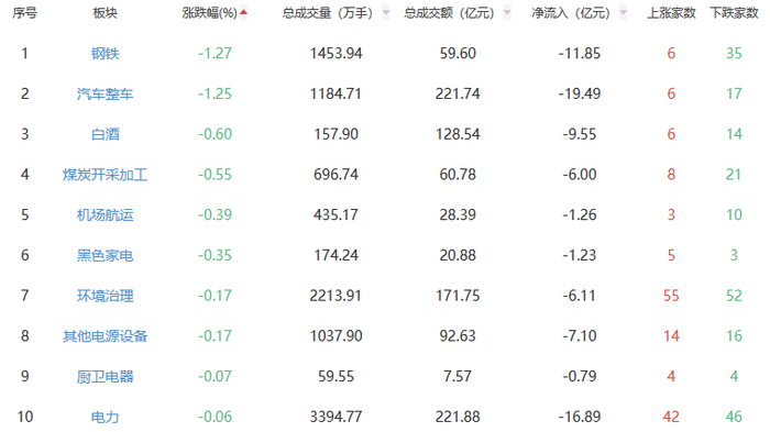 A股市场板块涨跌幅排行