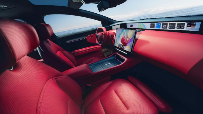 新车内饰配备64色氛围灯、HUD抬显、香氛、全景天幕。主驾座椅支持通风、加热、按摩、记忆功能,车内配备包含2个头枕扬声器在内的20扬声器。车机屏幕尺寸为15.6英寸2K分辨率,与之匹配的是10.25英寸仪表屏。