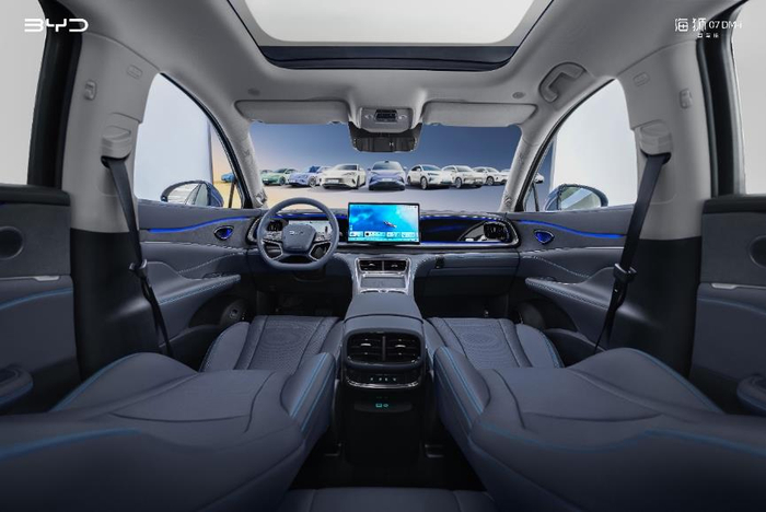 内饰配置上,新车配备15.6英寸中控屏+10.25英寸仪表+26英寸AR-HUD,搭载DiLink 100系统,支持5G联网及DeepSeek大模型语音交互。车载音响为丹拿音响、车载冷暖冰箱(-6℃至50℃温控)、前排十点式按摩座椅、全车座椅均支持通风/加热,后排纯平地台设计,后备厢容积645L(可扩展至1860L)。此外还可选装与大疆联合开发的灵鸢智能车载无人机(选装价1.6万元),支持动态起降、智能跟飞及一键成片,航拍画面实时回传车机,提升户外旅行体验。