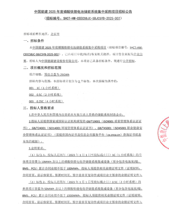 25GWh!中能建2025年储能系统集采