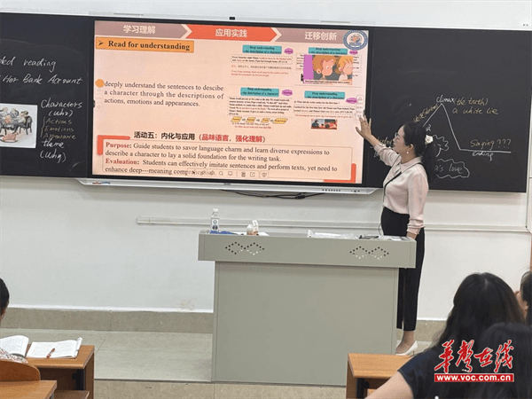 分会场活动由工作室卿柳梅老师主持。卿柳梅详细介绍了本次研修活动的目标、内容和安排。随后,工作室核心成员陈迪老师现场展示了青教赛优秀课例《B1U2 Extended Reading:Mama and Her Bank Account》,让在场的老师们清楚地了解了青教赛的要求和流程。工作室许媛老师执教《B6U1 Extended Reading:An Adventure in Africa》一课,充分运用数字技术,将人工智能与英语课堂教学有机融合,呈现出一堂生动有趣、高效互动的读后续写微技能课。