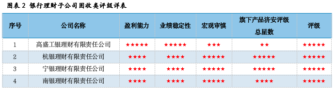 获得5星评级的非银行理财子公司共12家。部分列示如下。