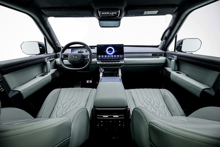 材质上,猛士M817的内饰大面积采用软包,包覆面积达32㎡,占比达91.2%。人体与座椅接触面大面积选用Nappa真皮,皮质细腻,顶棚及后备厢采用高档绒质面料。配置方面,新车将配备Nappa真皮座椅(支持按摩/加热/通风)、18扬声器丹拿音响、256色无级氛围灯、智能香氛系统、-6℃至50℃压缩机冷暖冰箱、双层静音玻璃、主动降噪、五门静音电吸门等。