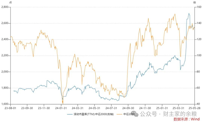 此后,即便遭遇中美贸易战的“偷袭”,中证2000指数暴跌,但人家反弹得比谁都快,到5月上旬的时候,中证2000的TTM市盈率估值,一度超过150倍呢!