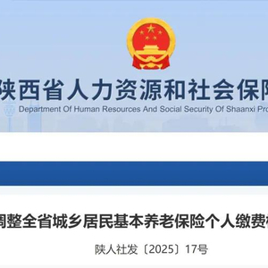 5月23日,陕西省人力资源和社会保障厅、陕西省财政厅、国家税务总局陕西省税务局共同发布《关于调整全省城乡居民基本养老保险个人缴费档次的通知》,自2025年6月1日起施行。