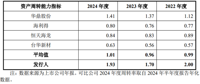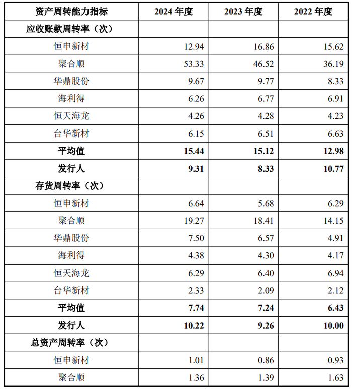 报告期内,发行人与同行业上市公司的资产周转能力的主要财务指标对比如下: