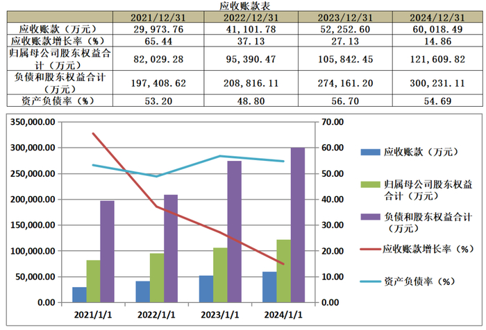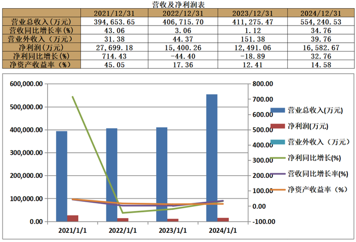 业绩情况:2021-2024年底,公司的营业收入分别为394653.65万元、406715.70万元、411275.47万元、554240.53万元,年均复合增长率为11.99%;归母净利润分别为27699.18万元、15400.26万元、12491.06万元、16582.67万元,年均复合增长率为-15.72%。