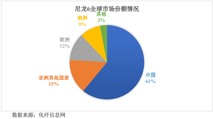 目前,从全球市场来看,尼龙6产业重心向以中国为代表的亚洲地区转移。由于具有经济增速较快、下游市场广阔、生产成本较低等优势,以中国为代表的亚洲地区成为尼龙6产业转移的主要承接地区。当前,中国已是全球尼龙6第一大生产基地和消费市场。