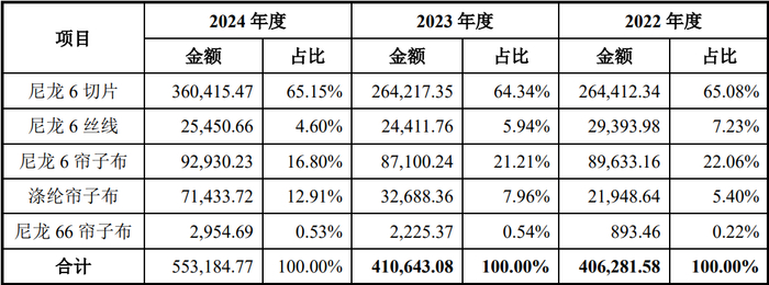 公司的主要产品为尼龙6切片、尼龙6丝线和帘子布,其中帘子布分为尼龙6帘子布、涤纶帘子布和尼龙66帘子布。