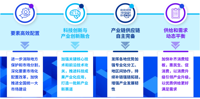 此后,“十四五”规划对“促进国内国际双循环”进行具体部署,党的二十大报告则提出“增强国内大循环内生动力和可靠性,提升国际循环质量和水平”,明确将“内生动力”和“可靠性”作为国内大循环的两个核心目标。