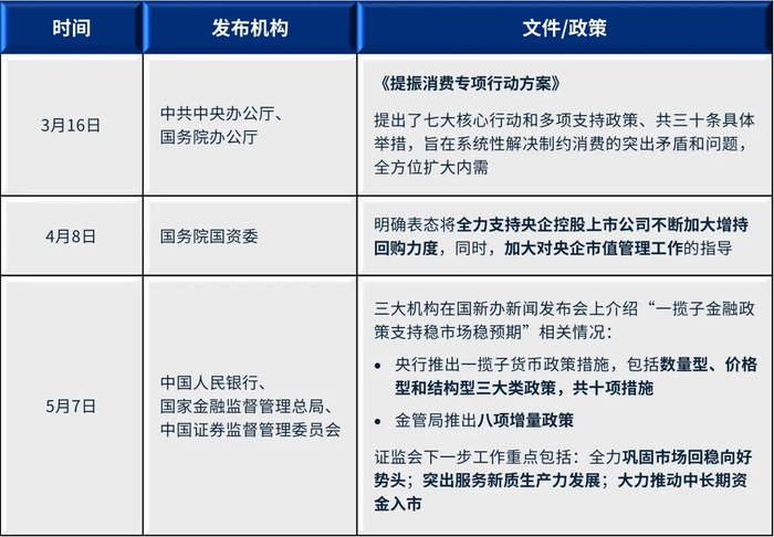 3月,中共中央办公厅、国务院印发《提振消费专项行动方案》,提出多措并举稳定股市,将强化央企国企控股上市公司市值管理作为拓宽城乡居民财产性收入渠道、促进城乡居民增收的具体举措之一。