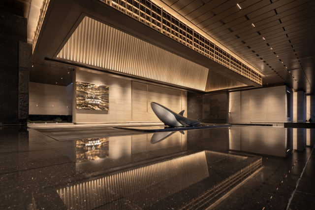 从大门到落客区,园林到入户大堂,步履之间,奢石带来的美,呈现出了别具一格的艺术风范。约400㎡的琉璃光瀑,背后是龙湖对高端人居的品质洞察。