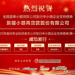 新疆小额再贷款股份有限公司此次成功发行债券,精准响应了普惠金融政策,为中小微企业开辟新的融资渠道。中小微企业是国民经济和社会发展的生力军,是稳增长、促就业、保民生的重要力量,但长期面临融资难、融资贵的困境。此次债券发行,让金融“活水”精准滴灌中小微企业,缓解其资金压力,助力企业扩大生产、创新研发、稳定就业岗位,是金融机构落实普惠金融政策、服务实体经济的有力证明。