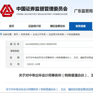 根据《上市公司信息披露管理办法》第五十五条的规定,证监会广东监管局决定对中审众环、王兵、潘桂权采取监管谈话的行政监管措施。要求中审众环所首席合伙人、质控合伙人及王兵、潘桂权于6月4日到广东证监局接受监管谈话。