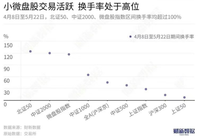4月8日至5月22日,北证50、中证2000、微盘股指数区间换手率超过100%
