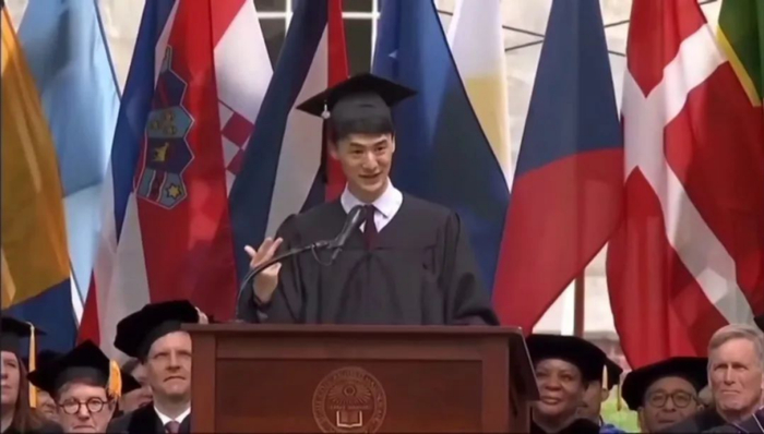 哥伦比亚大学2025华裔学生Andrew Yang作为工程学院的最高荣誉——valedictorian(毕业生代表演讲者)登上了演讲台,他的演讲充满智慧和真性情。