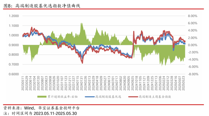 高端制造股基优选指数:上周收跌0.30%,成立以来累计录得-3.60%的超额收益。