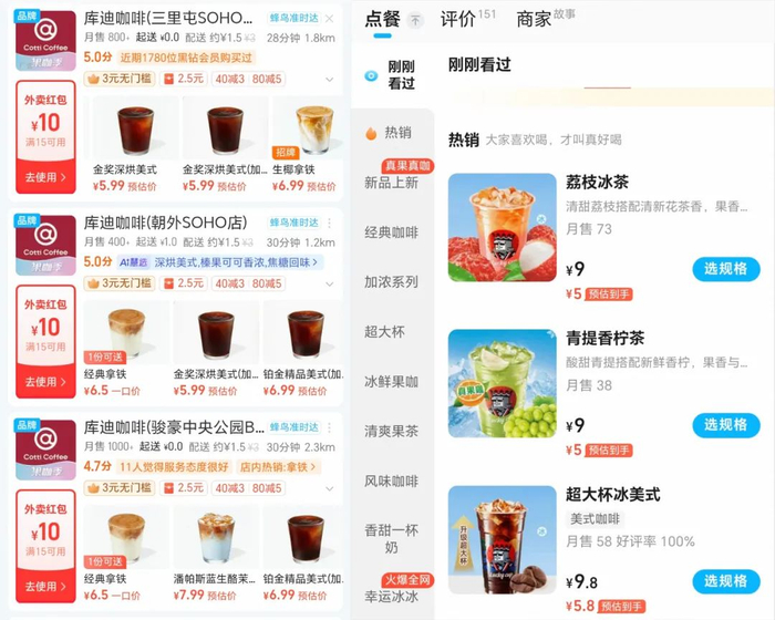 外卖平台补贴战火浇灌下,库迪3.9元咖啡单日销量暴涨10倍,幸运咖杀入6元区间......