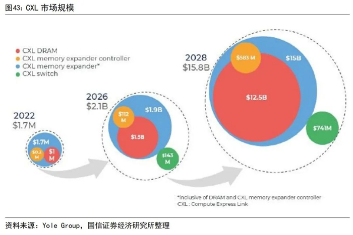 预计2028年CXL内存扩展市场规模达150亿美元,其中内存扩展控制器为5.8亿美元。根据Yole Group的预测,全球CXL内存扩展市场规模将由2022年的170万美元增长至2028年的150亿美元。在2028年的市场规模中,CXL DRAM市场规模最大,为125亿美元;CXL内存扩展控制器市场规模为5.83亿美元;CXL交换机市场规模为7.41亿美元。