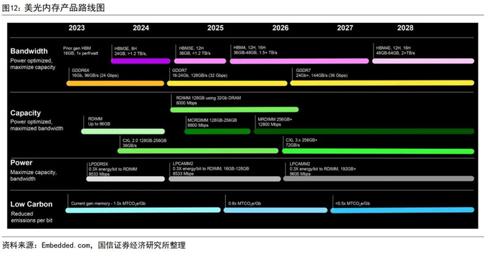 从内存厂商的产品路线图来看,内存模组产品和HBM产品线同时升级迭代。