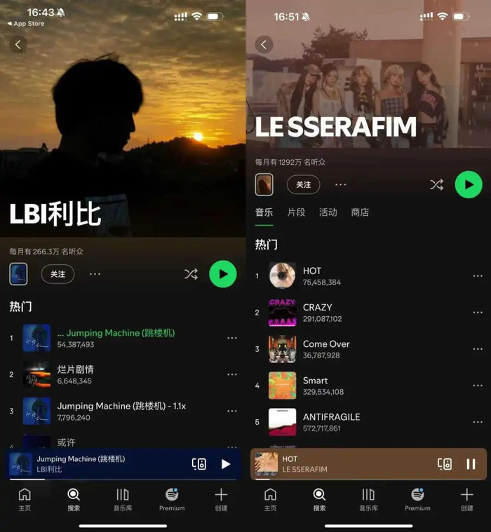 这种火爆并非圈内自嗨,有网友发现,今年Kpop团体发行的歌曲,海外流媒成绩比《跳楼机》高的竟然只有Lesserafim的《HOT》 。